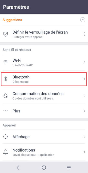 | Depuis la tablette (Sunmi L2, V2 Pro, M2 Max, T2s) cliquer sur "Paramétrage" et appuyer sur le module "Bluetooth". |
