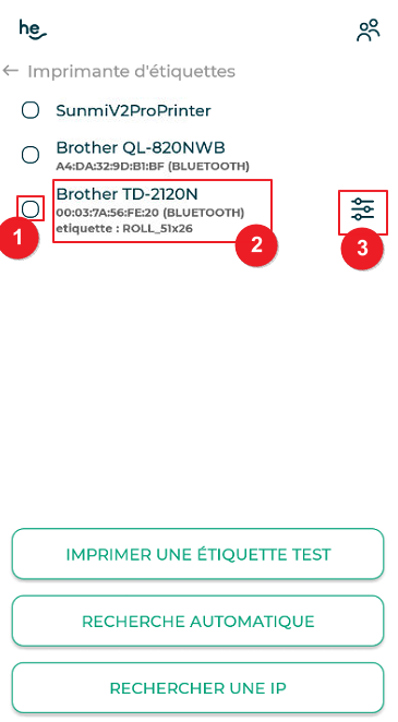 Etape 4 : Sélectionner l'imprimante sur l'application HACCP