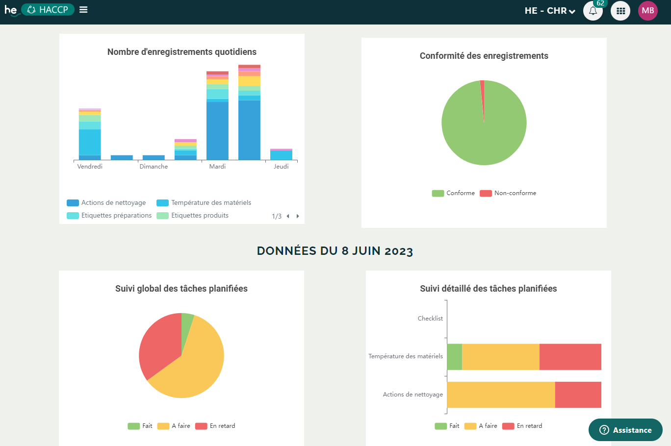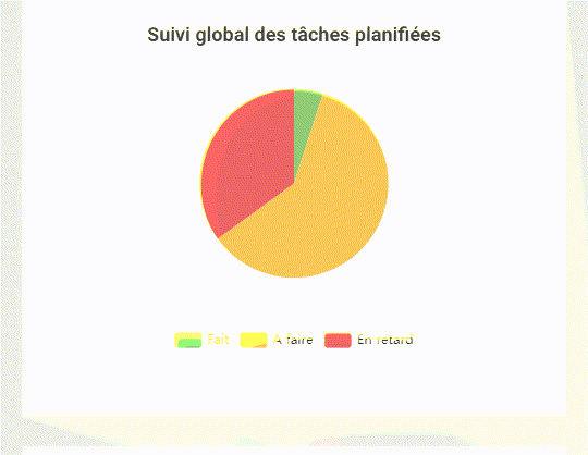 Tout un ensemble de données sont à dispositions pour surveiller l'évolution des différentes catégories et s'actualisent avec les enregistrements effectués aussi bien par le backoffice que par l'application.