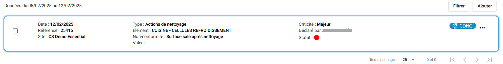 Pour ajouter, modifier ou supprimer une criticité sur une non-conformité déclarée, cliquez sur le bouton des options - Mineur - Critique - Majeur - Majeur DO (Déclaration obligatoire) - Sans criticité |